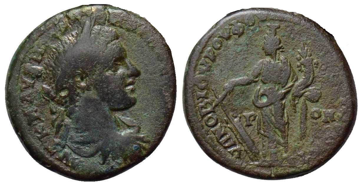 | Elagabalus / City Goddess AE Macedonia Amphipolis AMNG ---; ANS 201/202; Copenhagen ---; Moushmov 6117 |