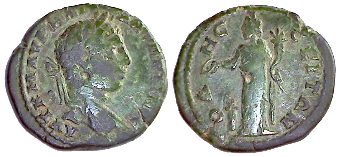| Elagabalus / Crescent, Star AE Mesopotamia Carrhae BMC cf.11 (Caracalla) |