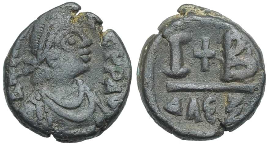 Tiberius / I 10 Nummi AE Antiochia (Theoupolis) Sear Byzantine 537 |