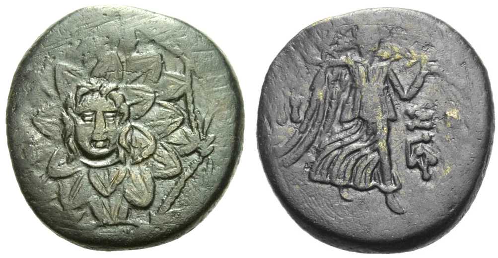 | Amazon / Helmeted Figure AE Amisus Pontus 120-63 BC BM BS ---; HGC VII --- |