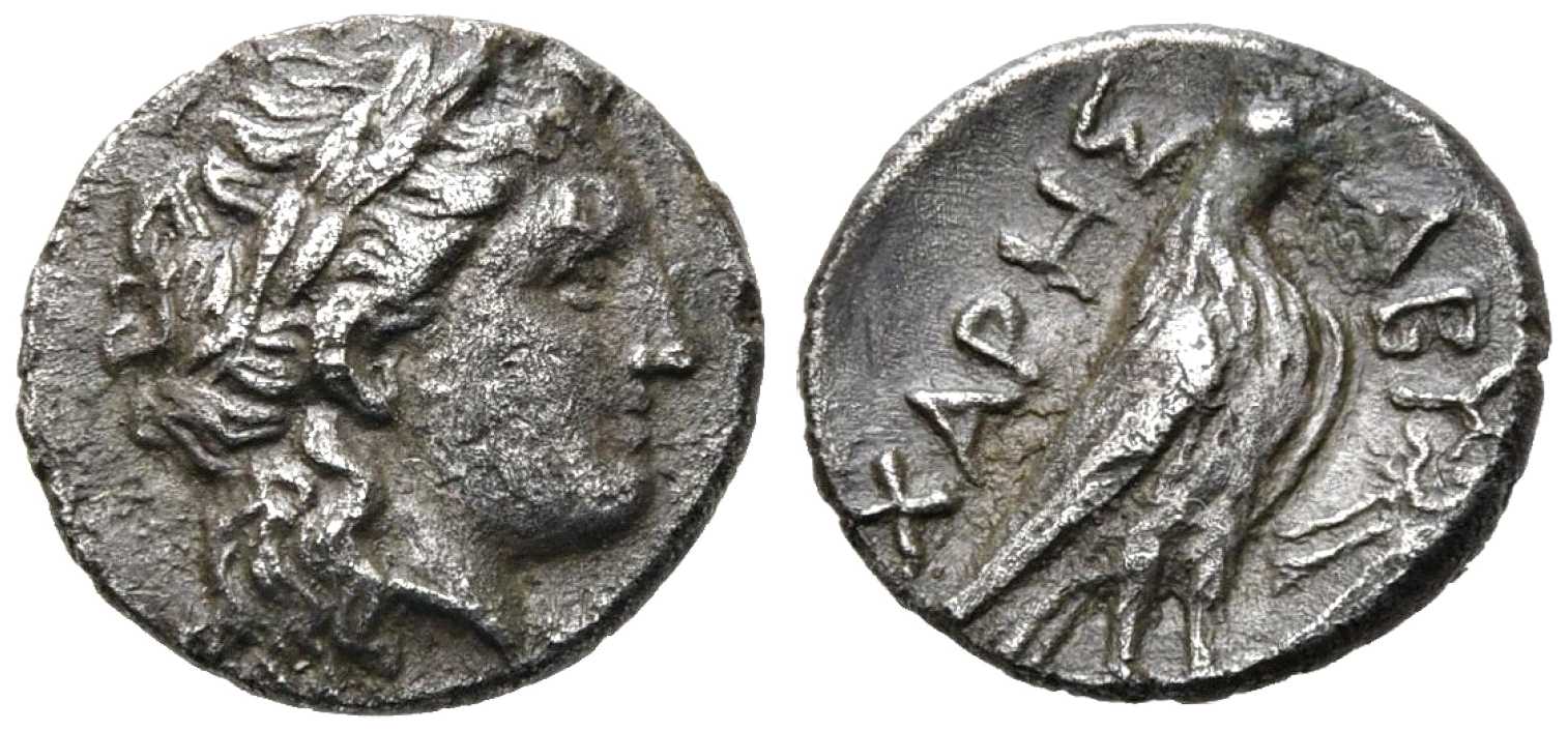 / Eagle within Wreath, B, ΙΦΙΑΔΟΥ AR 3.81 g ≈15.5 mm 80-70 BC BMC ---; Copenhagen ---; von Aulock --- CNG 99/193, 13.5.2015 |
