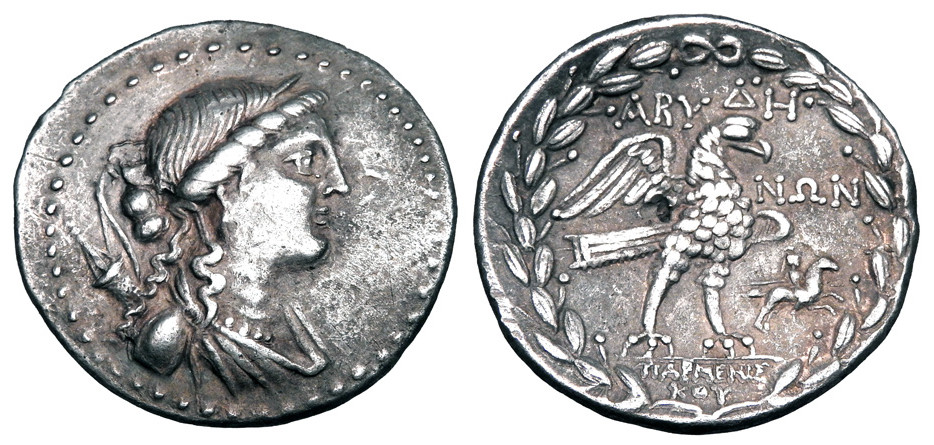 / Eagle within Wreath, Horseman, ΠΑΡΜΕΝΙΣΚΟΥ AR 15.53 g ?? mm 175-75 BC BMC --- Pegasi 155/111, 19.3.2019 AR 16.81 g ≈34 mm 175-75 BC ΜΕΝΙΣΚΟΥ BMC --- Solidus Num. 37/40, 16.12.2018 |