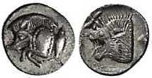 Tunny / Quadripartite Incuse Square EL 550-400 BC von Fritze I 63 v5849 2.67 g ≈11 mm Leu Num. 17E/9983, 14.8.2021 |